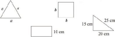 | квадрат правоугаоник чија је једна страница 10 cm једнакостранични троугао троугао са страницама 15 cm, 20 cm, 25 cm