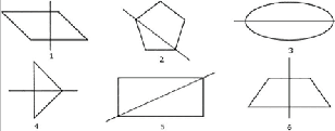 - Тијана је за домаћи задатак добила да одреди по једну осу симетрије задатих фигура. Њена другарица Јована погледала је задатке и приметила да је тијана на неколико места погрешила. Које је задатке Тијана тачно решила?